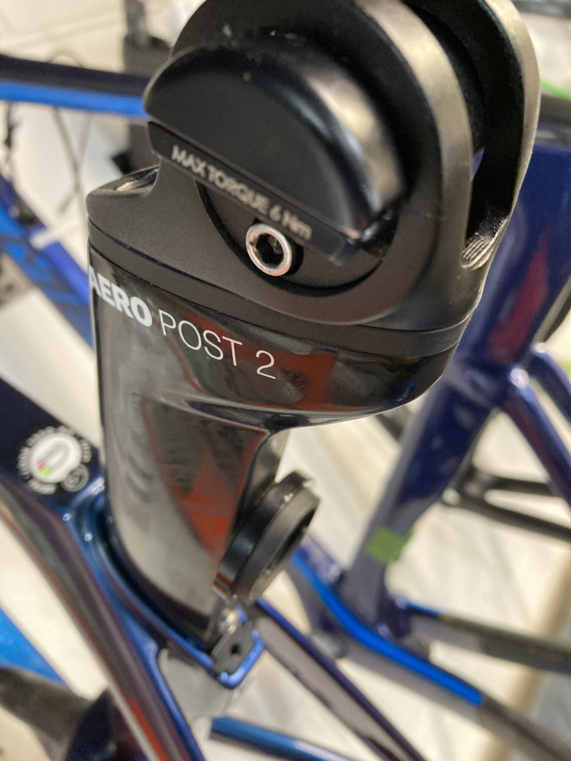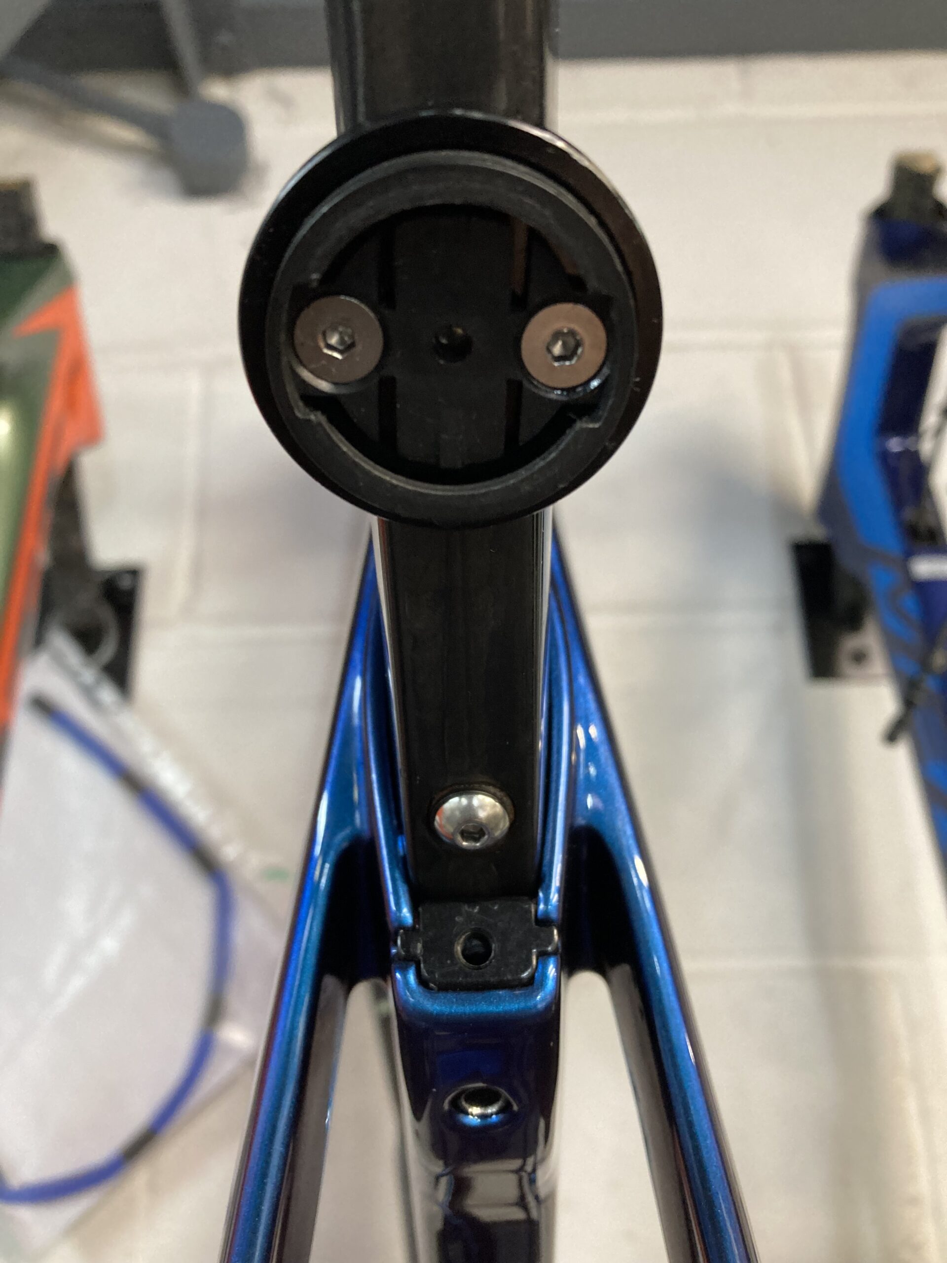 This frameset comes with a seat post, a stem, Garmin (seat post) mount and spacers included